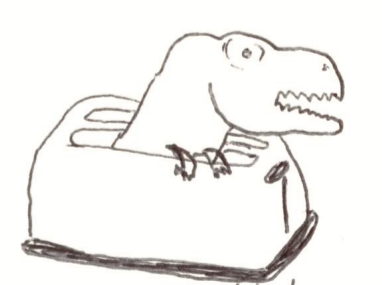 Tom's T-Rex doesn't understand why this bumper-car is so full of crumbs